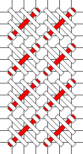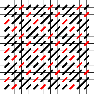 This stitch is worked with two needles simultaneously. Work one row of diagonal mosaic (black lines), then a row of tent stitch (gray lines) to frame it. Continue with the next row of diagonal mosaic, and so on. The charts below start with the longest row first. This is so you can get familiar with the stitch before you have to start compensating. If you're comfortable with compensation, you can start in one of the other corners.