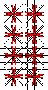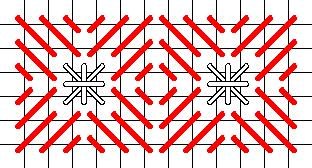 Some of the stitches are rotated 90° from the charts below to provide continuity of line throughout the design. This is noted in the stitch description. Please refer to the color picture for the proper orientation.