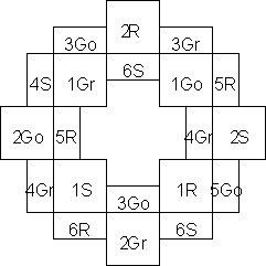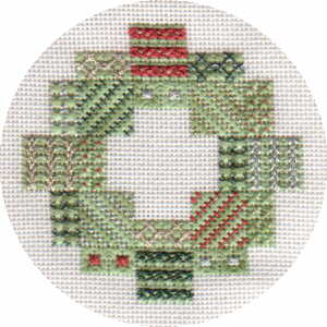 I Shrunk the WreathThe schematic below defines the different stitching areas. Each area is identified by number and letter. The number indicates which stitch to use; the letter indicates the color of the metallic thread used as an accent.