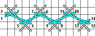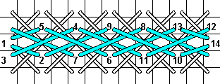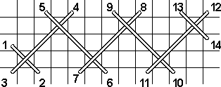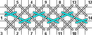This stitch is worked in four journeys. Each journey is worked from left to right.